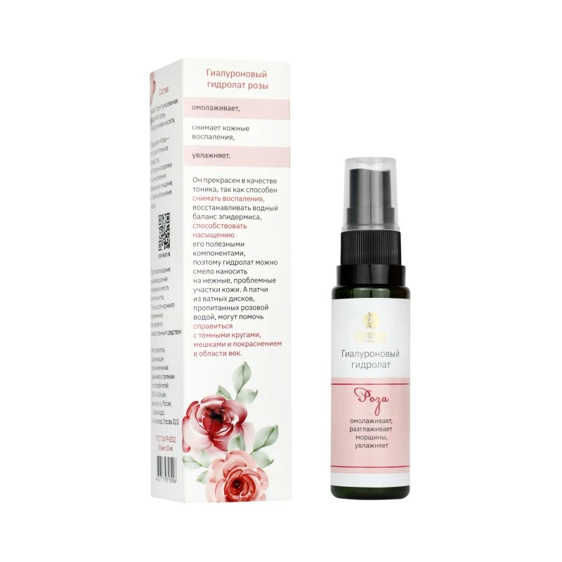 Состав: вода структурированная, гидролат розы, гиалуроновая кислота.